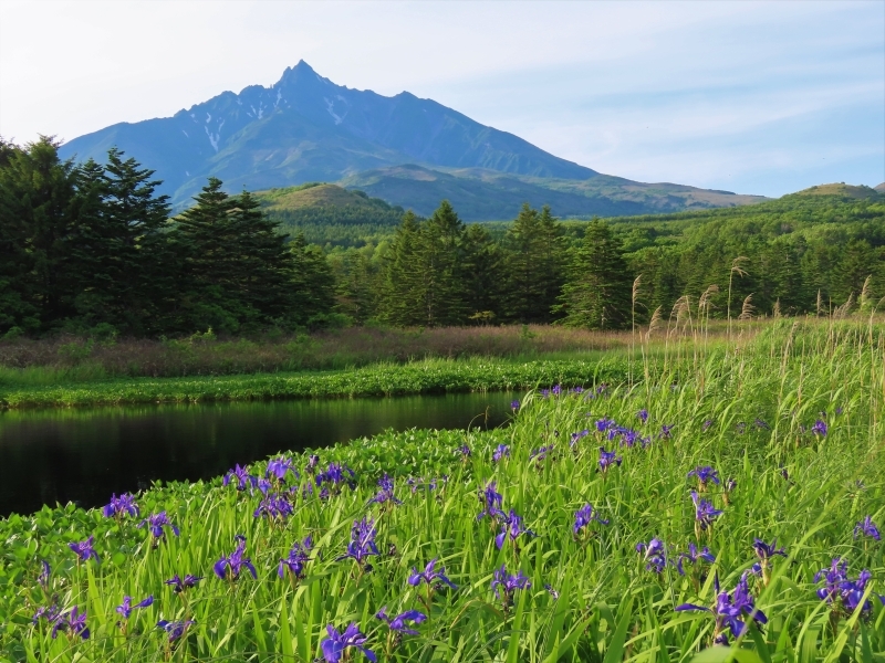 南浜湿原は利尻島内では数少ない湿原と特徴的な植物を観察することができます。ミズゴケやモウセンゴケをはじめ、春にはミツガシワ、夏にはカキツバタを見ることができ、天候が良ければ利尻山も眺めることができます。