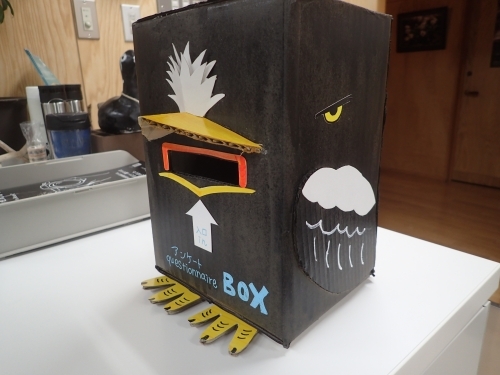 目つきが悪いといううわさもありますが、今回のオオワシ型アンケート回収ボックスはなかなかの力作に仕上がったと自負しています!