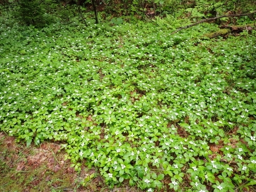 春、林床にはゴゼンタチバナの花の絨毯ができます。