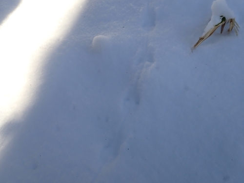 探勝路の部分は雪が踏み固められ隙間がなかったのか、探勝路を横断するときだけ上に出てきていました。