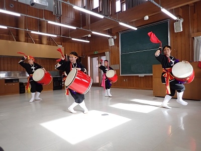 「琉球國祭り太鼓」の皆さんが、 沖縄の芸能と支笏洞爺国立公園をチャンプルー(まぜこぜ)し、誰しもが耳にしたことのある曲に合わせて、エイサーの演舞を披露しました。