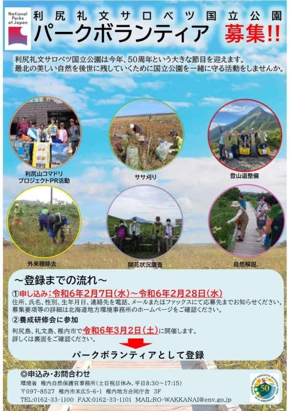 利尻礼文サロベツ国立公園パークボランティアの募集について | 北海道地方環境事務所 | 環境省 (env.go.jp)