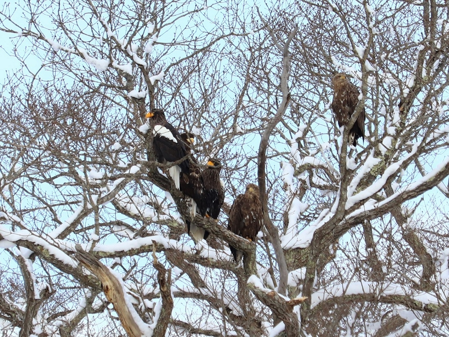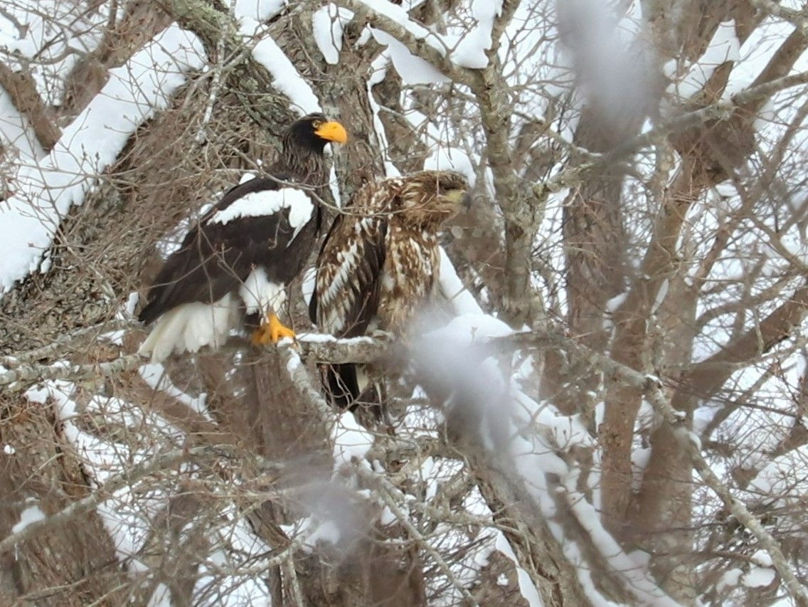 翼を広げると2m以上にもなる大型の猛禽類オオワシが越冬のためやってきているほか、ウソやシマエナガなどの小鳥の群れ、さらには水面にカワアイサをはじめとした水鳥の群れが見られます。