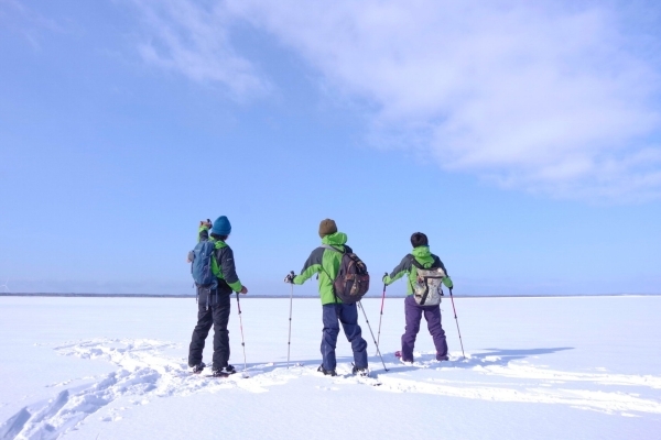 雪原を巡視する利尻・礼文・サロベツ担当のアクティブレンジャー3人