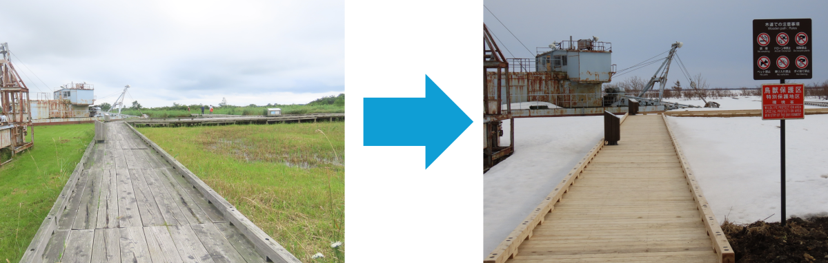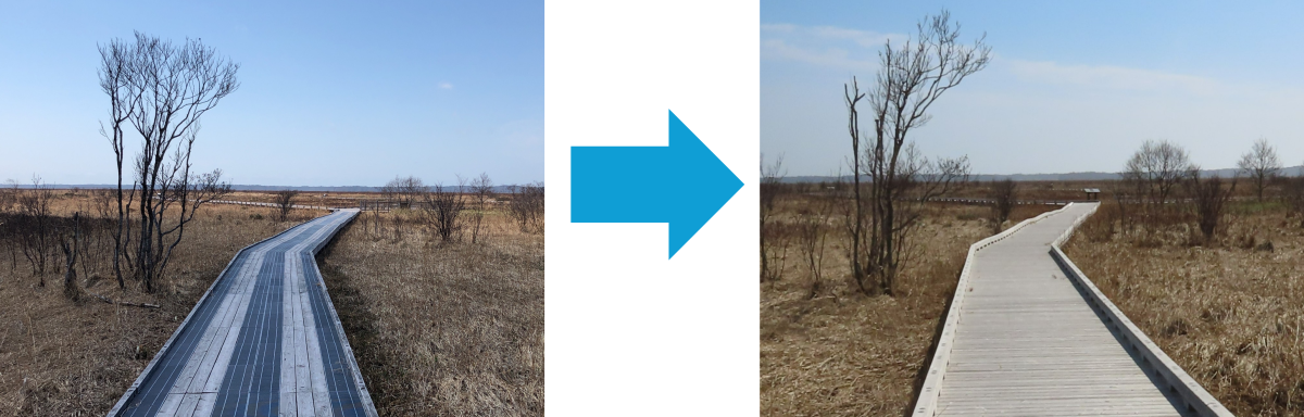 右側は今年度の5月に撮影した現在の木道です。似た画角で撮影していました。