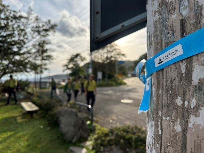 しおかぜ公園の看板によく見ると、北海道東トレイルのテープが設置されています。