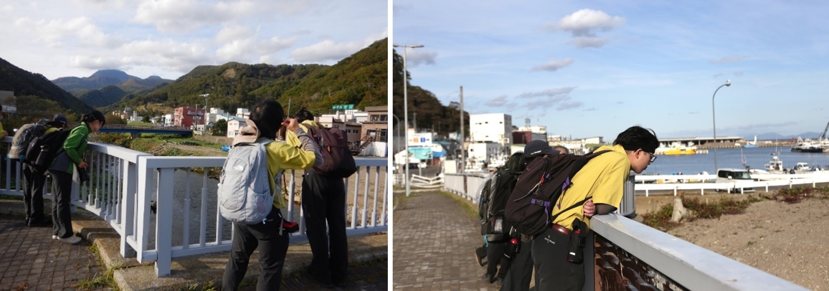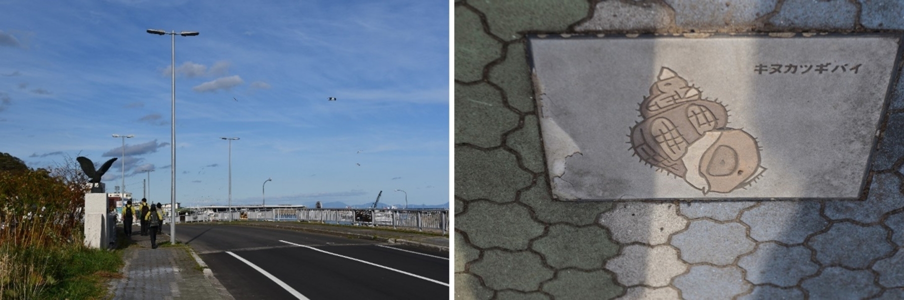 羅臼川の河口に架かるオジロ橋には、実物サイズのオジロワシの像が設置されています。ちなみに、ビジターセンターから羅臼川沿いを歩いていると、羅臼に生息する生き物たちの像やイラストが橋、欄干、マンホールなど点在していました。ぜひ探してみてください。