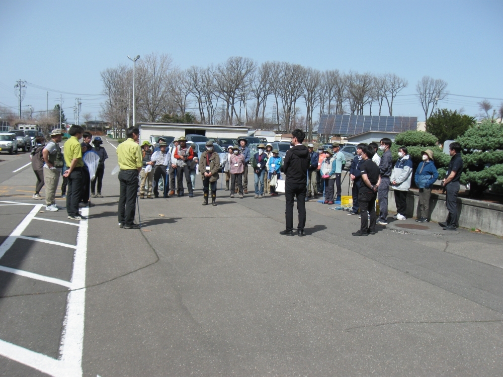 4月26日(金)、士幌町においてセイヨウオオマルハナバチの防除活動に大雪山国立公園パークボランティア13名が参加しました。前述のほか、ひがし大雪自然館スタッフや友の会も加わり、43名での活動となりました。