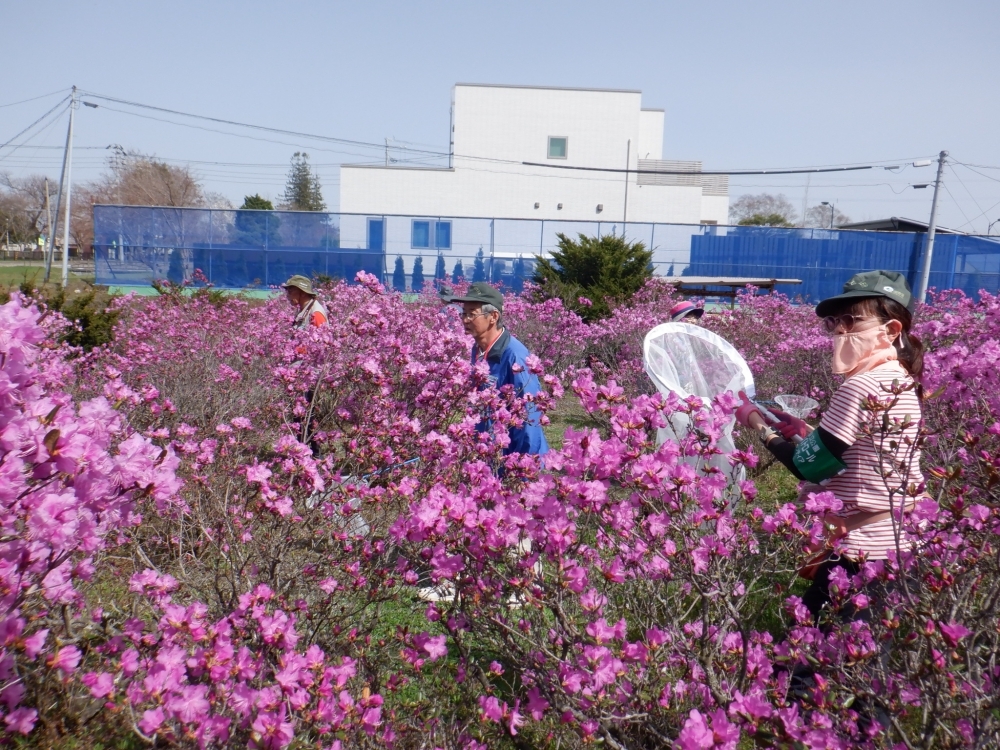 桜と同じ頃に開花するので、桜開花予想の情報を睨みながら準備を進めます。桜開花予想は1月下旬には第1回が発表され毎週更新されます。集中防除は、士幌町さん、JA士幌町さん、十勝総合振興局さんらとともに開催し、そのほかにもセイヨウオオマルハナバチバスターズさんや大雪山国立公園パークボランティアさんらにもお声がけするため、4月1日には活動日を決めなければなりません。最近はゴールデンウィークの前に開花を迎えることが多くなりました。