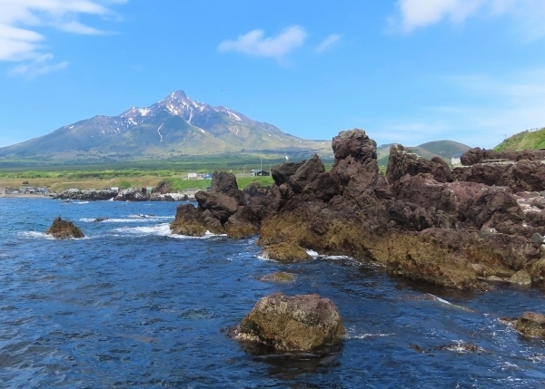 利尻島はおよそ200万年前の海底噴火によって誕生した火山島です(出典:産総研地質調査総合センターウェブサイト 地質で語る百名山 利尻山)。その後何度かの噴火活動を経て今の島の様相になりました。仙法志御崎公園からはそんな島の“はじまり”を想起させるようなゴツゴツとした火山岩が海から顔を出している様子を見ることができます。そのバックには利尻島のシンボルにもなっている利尻山が鎮座しており、これからの利尻島を巡る旅の“はじまり”を感じさせてくれます。