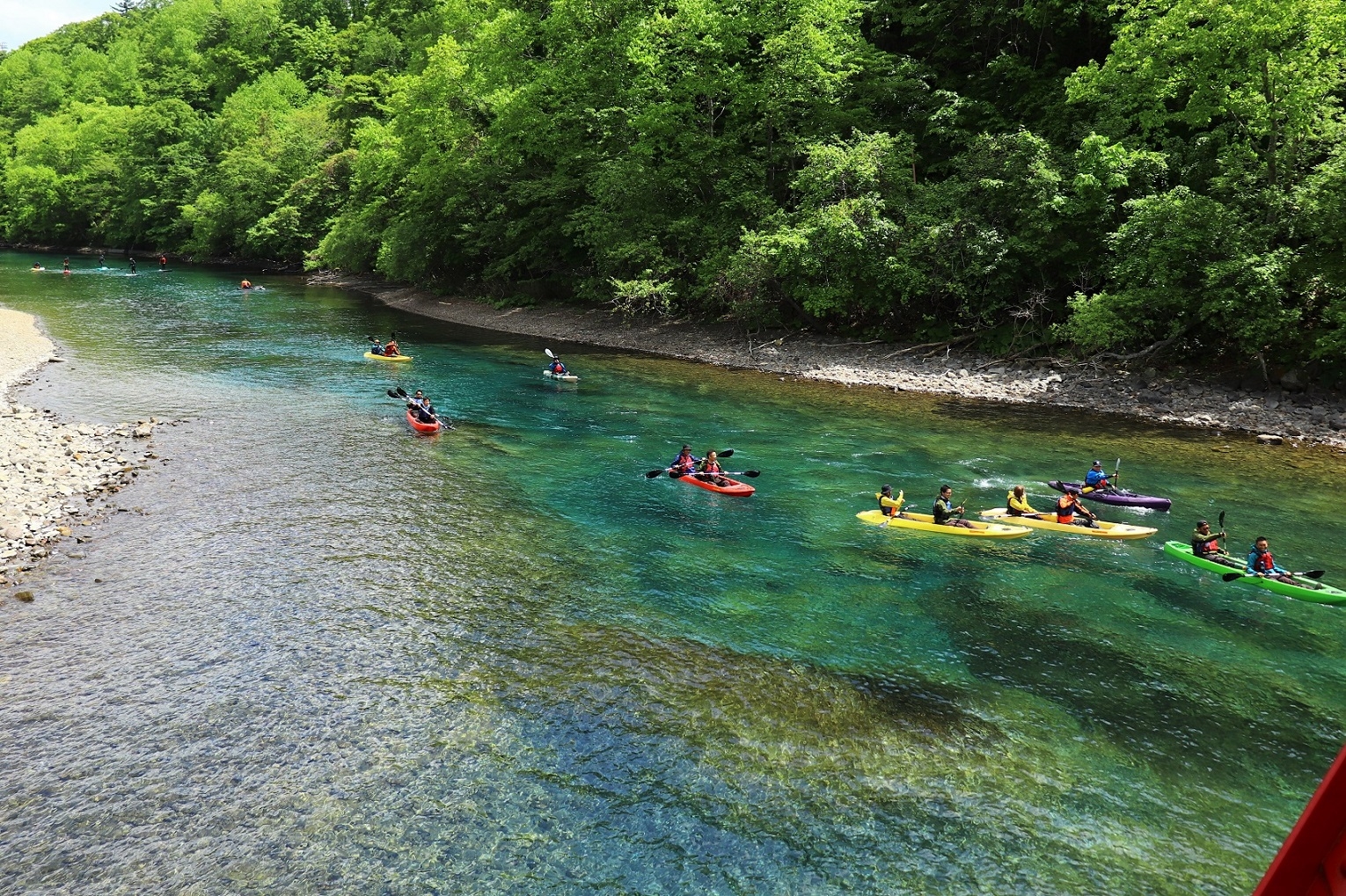 支笏湖周辺は森の緑が生い茂り、太陽の光が水中に差し込んで支笏湖ブルーがよく映える季節になりました。