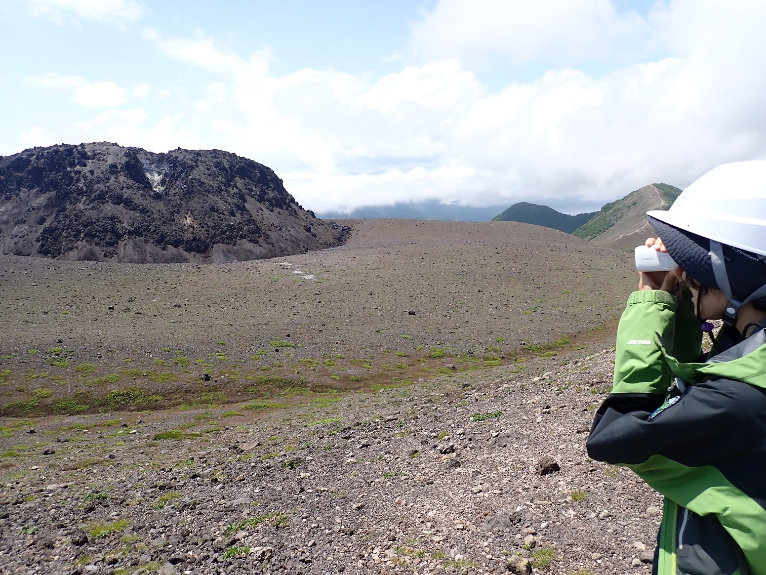 樽前山に登り、「Canon PowerShot Zoom」を手に溶岩ドームと対面