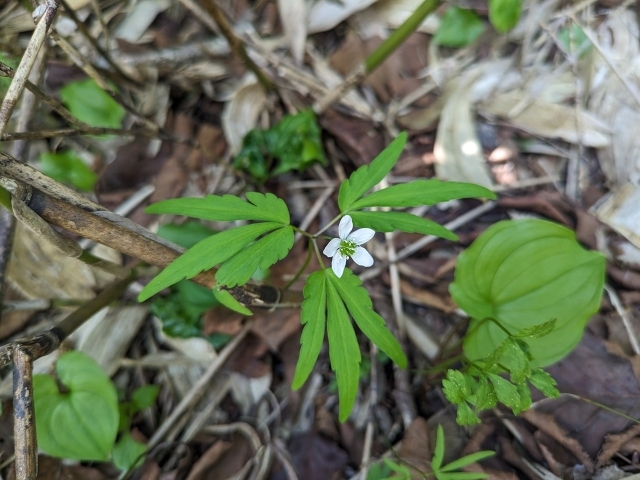 ヒメイチゲ(キンポウゲ科)特徴のある葉(3全裂)