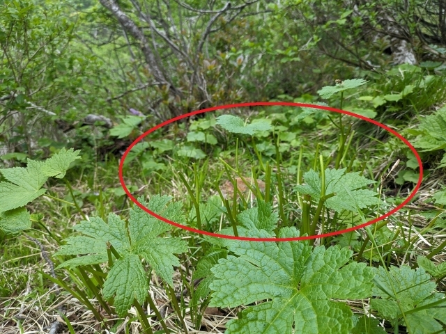 シラネアオイの群落が有名なオロフレ山ですが、この日は毎年登っている方も、花の数が少なく感じたようです。よく目を凝らしてみると、至るところにシカの踏み跡(シカ道)ができていて、シカによる食痕が多数確認できました。シカは、シラネアオイを好んで食べているようです。道内の他の山でも、高山植物のシカによる食害が深刻だと聞きます。シラネアオイが少ない原因がわかって納得できた反面、オロフレ山のシラネアオイが今後どうなっていくのか、不安になるところです。今後も、観察していこうと思います。