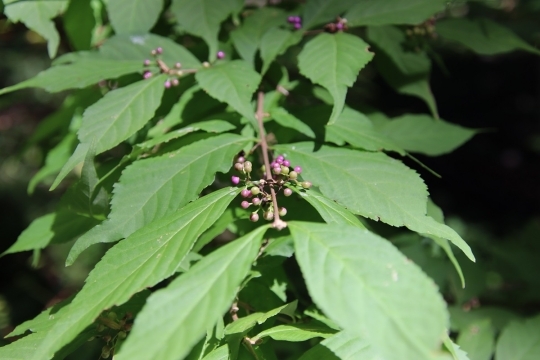 ムラサキシキブ:名前と相まって、淡い紫が見ていて心地よさを感じました。これから紫が濃くなっていくのでしょうか。色が美しいので、観賞用に栽培されることもあるそうです。