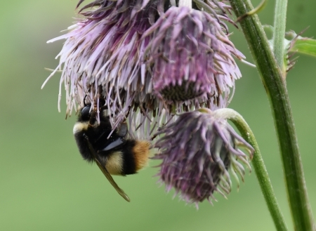 ミヤマサワアザミに訪花する在来種エゾオオマルハナバチ