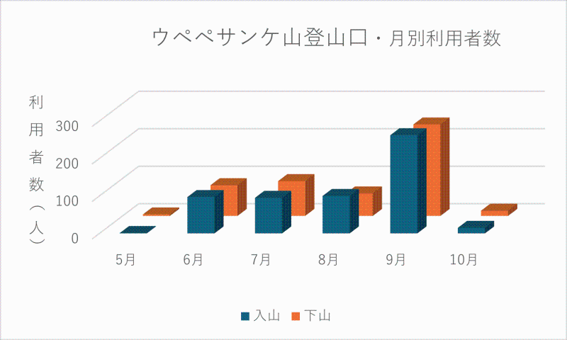 そうはいっても、ウペペサンケ山の利用者数が500人を超えるのは平成28年の大雨被害以降初めてです。ササ刈りなど関係者の努力や愛好家によるSNSなどの発信がウペペサンケ山の実力を知らしめたでしょう。