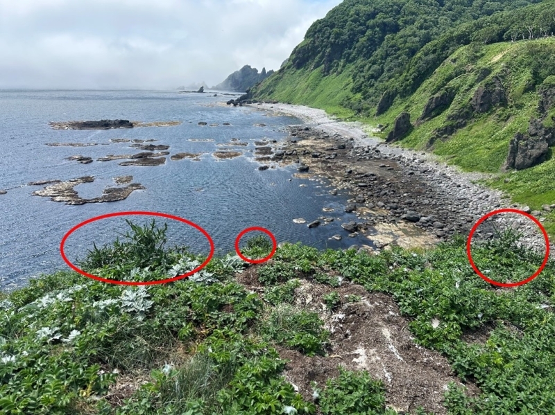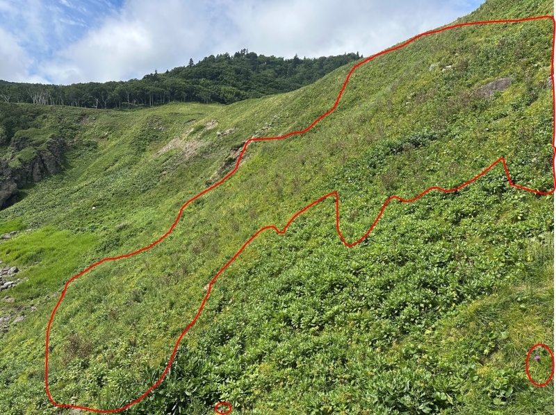 近年、知床新産種の植物が発見された箇所で複数株確認。とても複雑です。