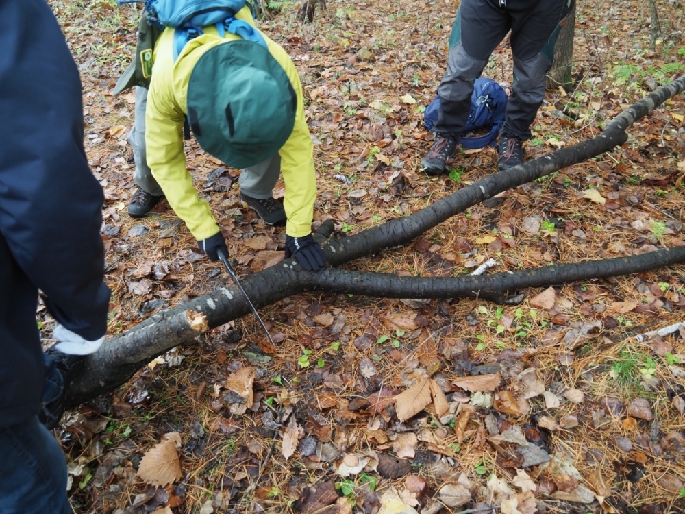 パークボランティアのみなさんの協力のもと、定期的に四十三山のパトロールを行い、倒木の処理や枝払い、ゴミ拾い等を行っています。11月中旬に今年度最後のパトロールを行い、ゴミ拾いをしながら倒木を2本処理しました。最後にゲートを閉じて、来期の開通までしばしのお休み。無事に作業を終えることができました。ゲートを閉じて、洞爺湖に向かって下りると、正面に羊蹄山と洞爺湖中島がドーンと目に入ってきます。高さは4倍も違いますが、遠近の妙で双子のようです。絶景に疲れを忘れる瞬間でもあります。