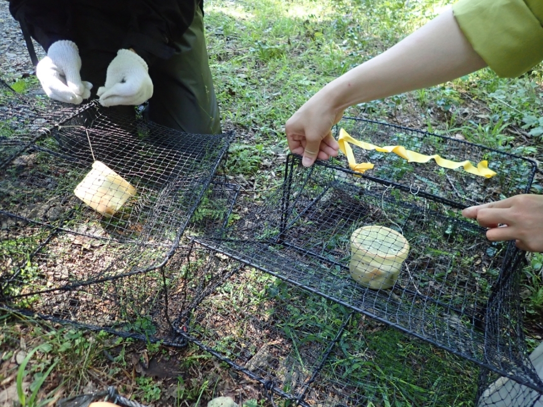 捕獲にあたっては阿寒湖の自然環境に配慮するため、罠のエサも阿寒湖のものにこだわった。