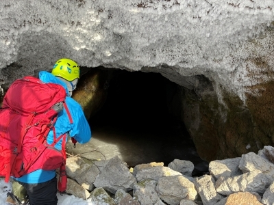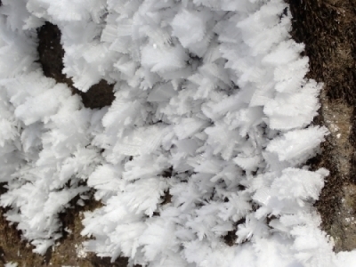 また、上記の写真は大函トンネルの試し掘り跡地の天井で見られる霜結晶です。