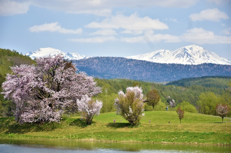 道北地方は3~4月はぐずついた天気が続き、5月に入ってようやく天気予報に太陽マークが並ぶようになり、桜の開花も例年より少し遅れましたが、東川町の桜の名所で桜見物ができました。