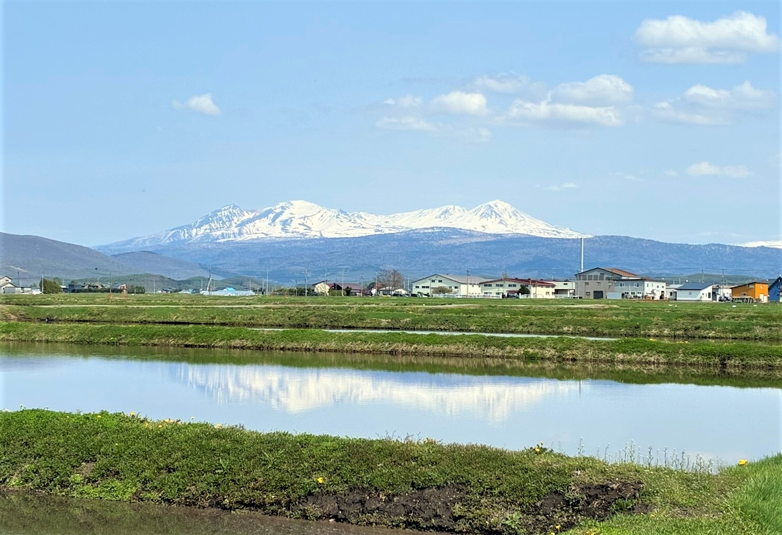 風のない日は水田が鏡のようになり、大雪山が美しく映ります。