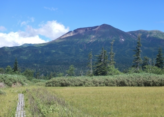 ここから見る旭岳は重厚で、どっしりとした山容は北海道最高峰の威厳に満ちています。秋の紅葉もおすすめです。