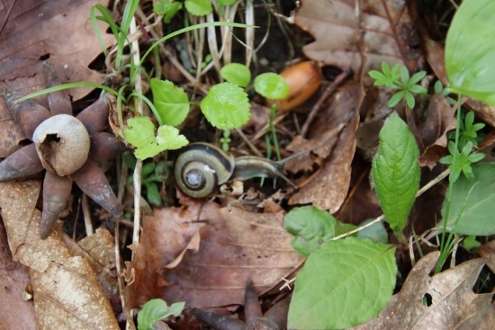 雨上がりだからでしょうか、カタツムリを多く見かけて、アミガサタケもありました。アミガサタケは日本ではあまりなじみがないですが、海外では高級食材として食べられているところがあるようです。