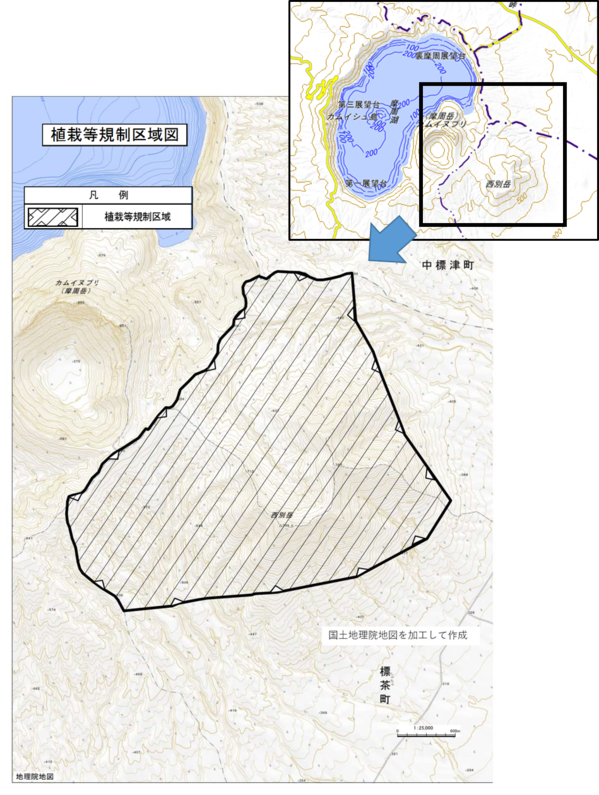 園法(昭和32年法律第161号)に基づき、西別岳及びその周辺において、許可を受けなければ植栽し、又は