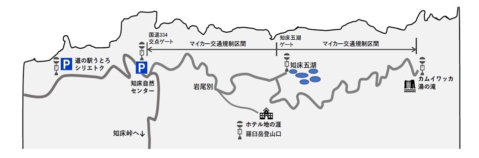 知床自然センター~カムイワッカ湯の滝までの区間と周辺地域