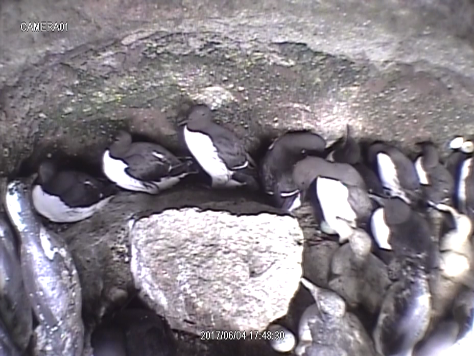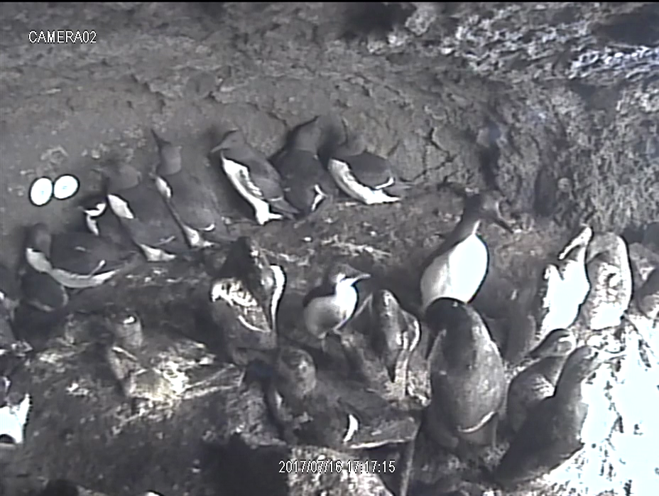 天売島における今シーズンのウミガラスの繁殖が終了しましたので、お知らせします。 17羽のヒナの巣立ちが確認され、7年連続の巣立ち成功となりました。なお、今年は56羽の飛来を確認しました。天売島で50羽を超えるウミガラスの飛来が確認されたのは、2006年以来11年ぶりとなります。 過去20年の調査では最多となっています。