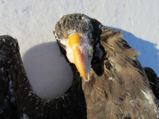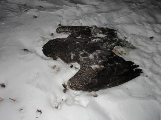 写真:発見当時のオオワシの様子(足寄町役場提供)