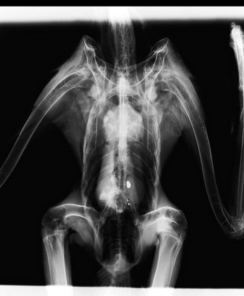 写真:オオワシのレントゲン写真及び鉛片(猛禽類医学研究所提供)
