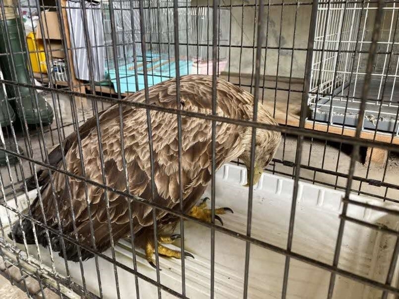 令和7年6月2日16時頃に千歳市上長都(かみおさつ)で衰弱していたオジロワシを収容しました。収容した個体は、環境省釧路湿原野生生物保護センターに搬送し、環境省から希少種の治療業務を請負っている猛禽類医学研究所にて治療を継続しています。